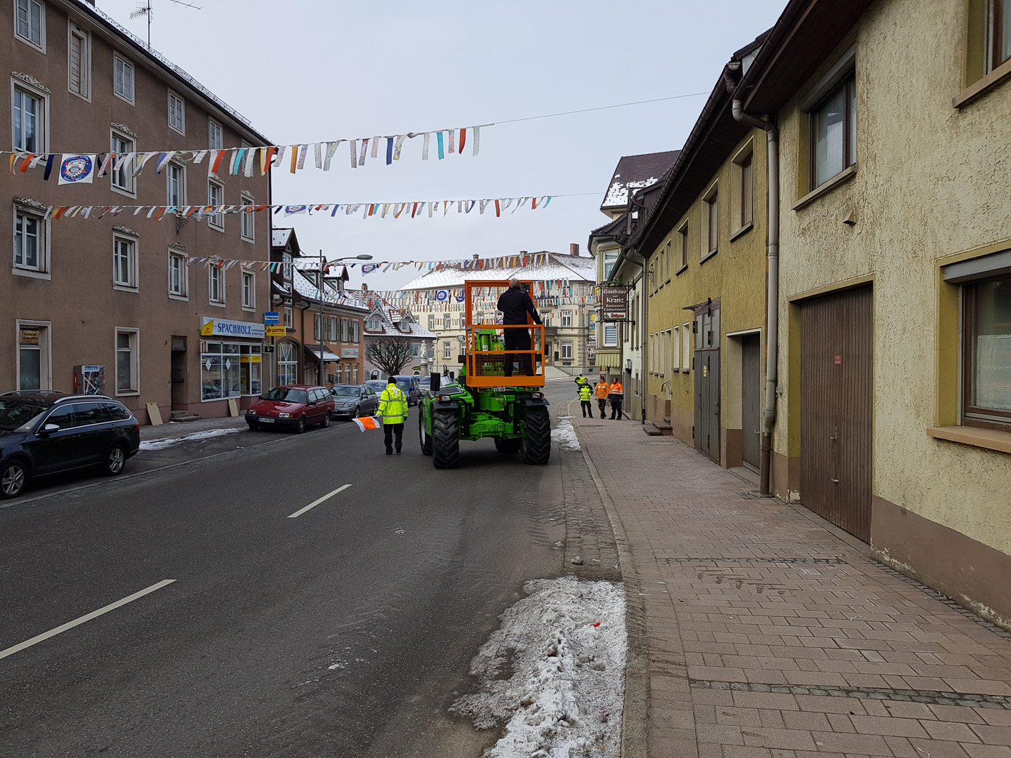 Die Fasnet ist vorbei und es gilt aufzuräumen. Nach dem Ausschlafen muss die Straßenüberspannung - Fetzen genannt - abgehängt und verstaut werden. Hierzu sind Helfer jederzeit willkommen!