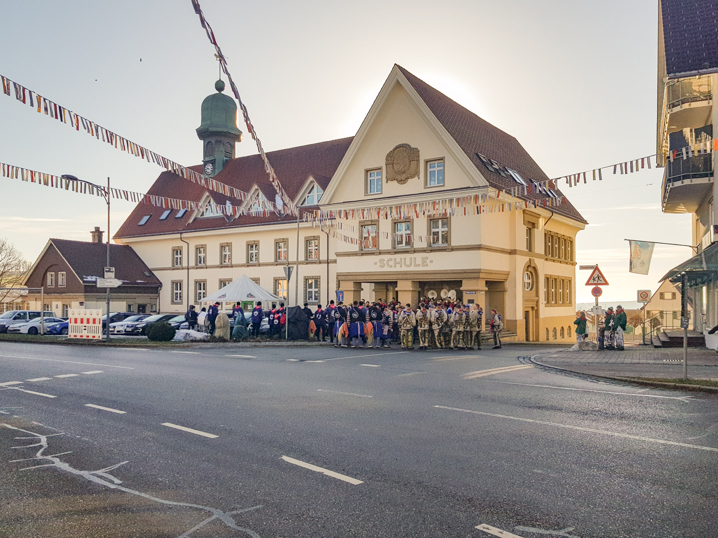 Nachdem letztes Jahr keine Fasnetbändel aufgehängt wurden, sind sie dieses Jahr wieder zu sehen.